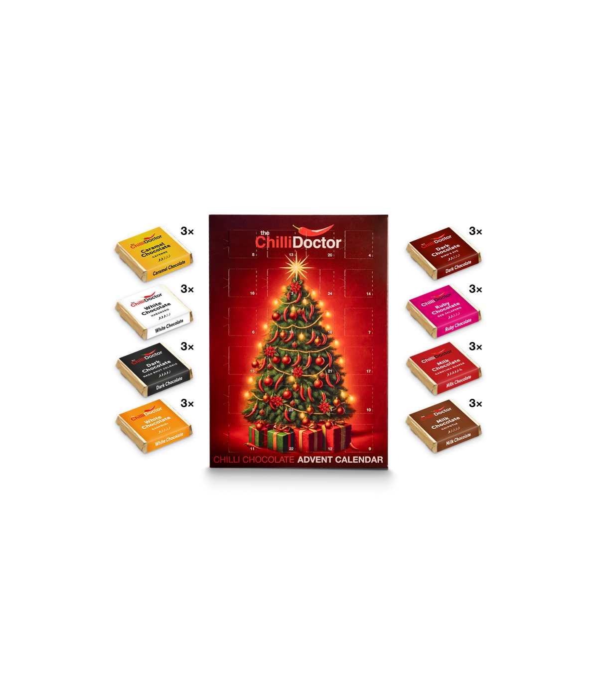 Zažite hrejivý adventný čas s jedinečným spojením lahodnej čokolády a pikantnej chilli! Tento adventný kalendár je ideálny pre milovníkov sladko-štipľavých kombinácií. Každé okienko skrýva čokoládový kúsok obohatený rôznymi druhmi čili, ktoré vám postupne prehrejú zimné dni.