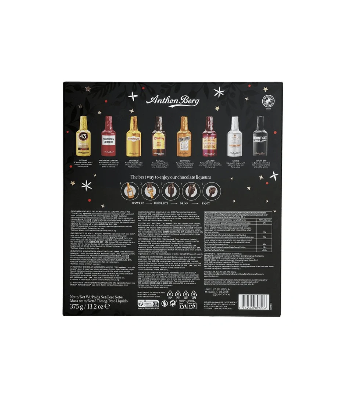 Adventný kalendár nemusí byť len pre deti. Tento luxusný kalendár ukrýva 24 čokoládových fľaštičiek, ktoré spájajú jemnú horkú čokoládu s kvapkou pravého likéru. Obdarovaný si tak každý deň adventu dopraje malý gurmánsky zážitok - sladký, voňavý a ľahko hrejivý. Vo vnútri nájdete výber svetových značiek, napríklad Cointreau, Licor 43, Southern Comfort, Mount Gay alebo Camus.