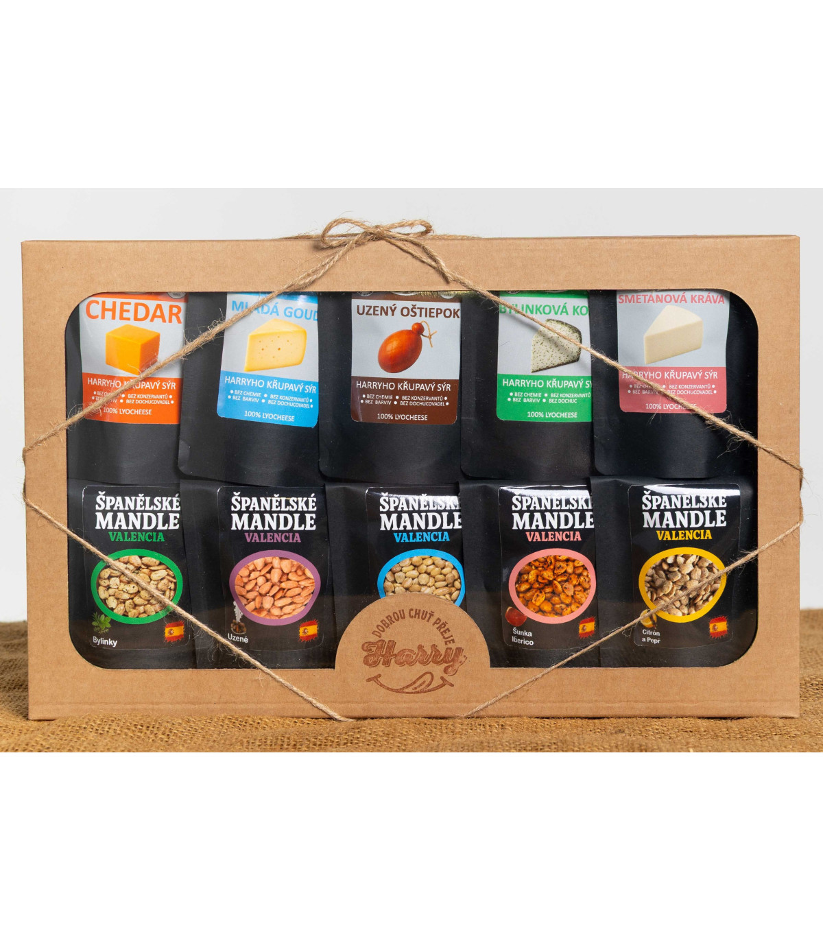 DARČEKOVÁ SÚPRAVA CHRUMKAVÉHO LYOFILIZOVANÉHO SYRA A ŠPANIELSKYCH MANDLÍ