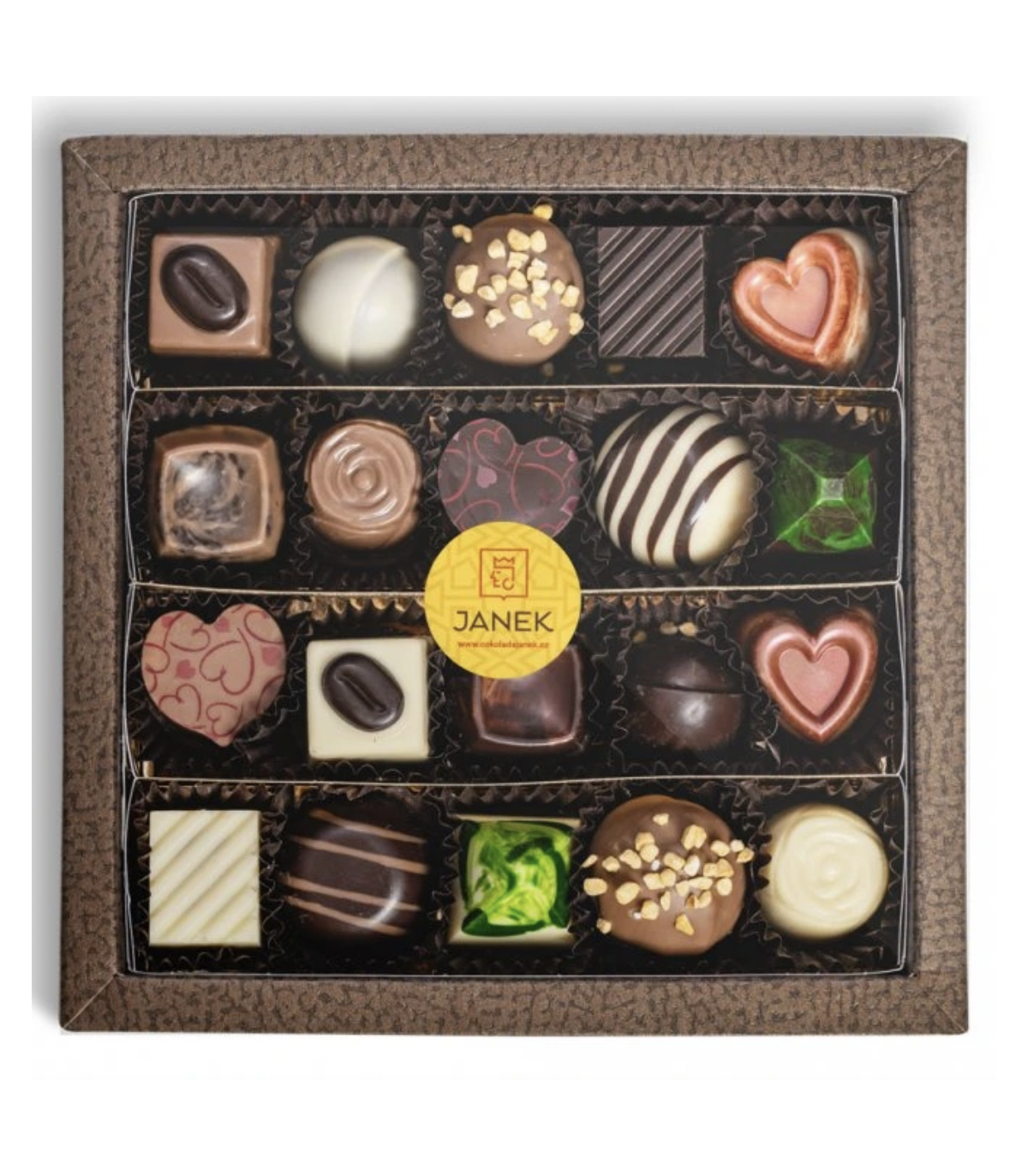 Hľadáte recept na lepšiu náladu? Čo takto niečo sladké? Kvalitné lanýžkové pralinky zaujmú na prvý pohľad, ale až po ochutnaní príde to hlavné. Čo pralinka, to skvost, doslova. Láska na prvé ochutnanie. Vo vnútri krabičky sa nachádza dvadsať kúskov čokoládových jedno- hubiek, po ktorých sa vám budú doslova zbiehať slinky. Každá pralinka má inú príchuť a iný dizajn. V každej sa ukrýva nejaké prekvapenie. Túto bonboniéru môžete darovať z lásky alebo len tak pre radosť svojim blízkym. Nechajte sa inšpirovať a doprajte si čokoládu z dielne českého výrobcu, ktorý robí svoju prácu s láskou a oddanosťou.