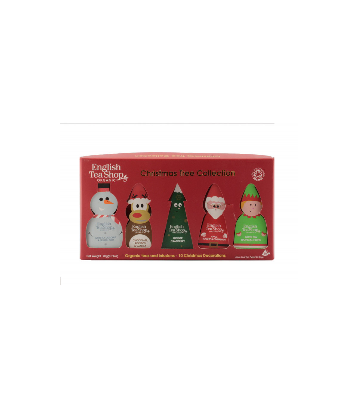 Darčeková súprava obsahuje vianočné figúrky na stromček od značky English Tea Shop obsahuje kvalitné čaje v bio kvalite. Čaje sú zabalené v pyramídkach, ktoré sa dajú zavesiť na vianočný stromček. Tieto lahodné čaje budú netradičnou ozdobou vášho stromčeka.