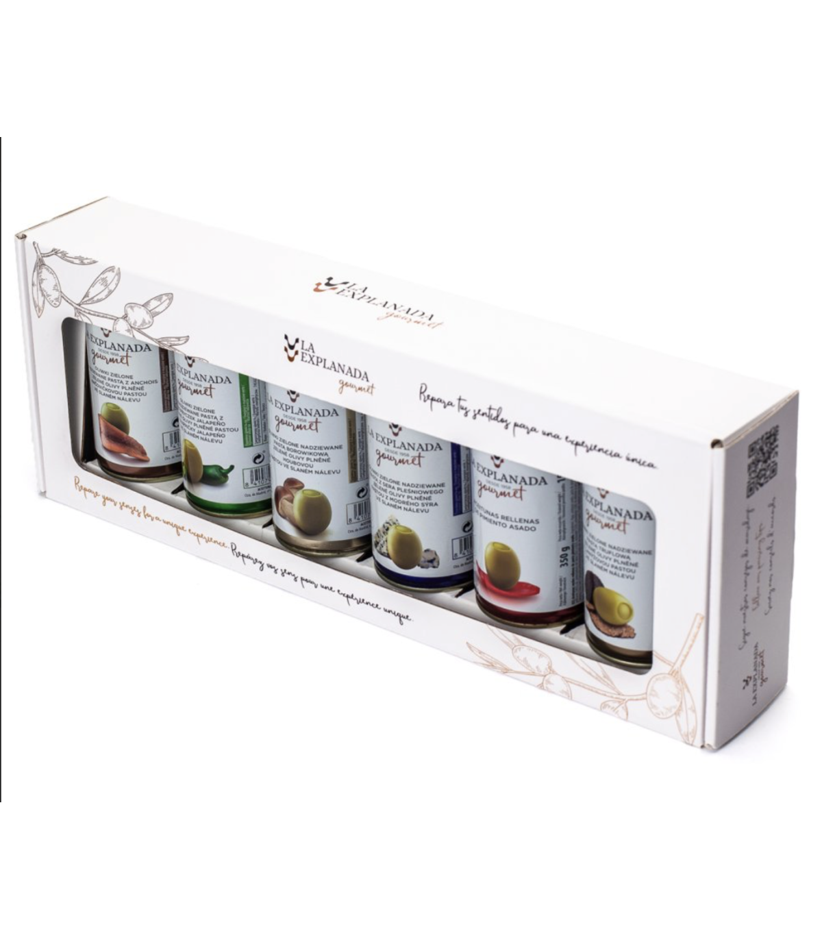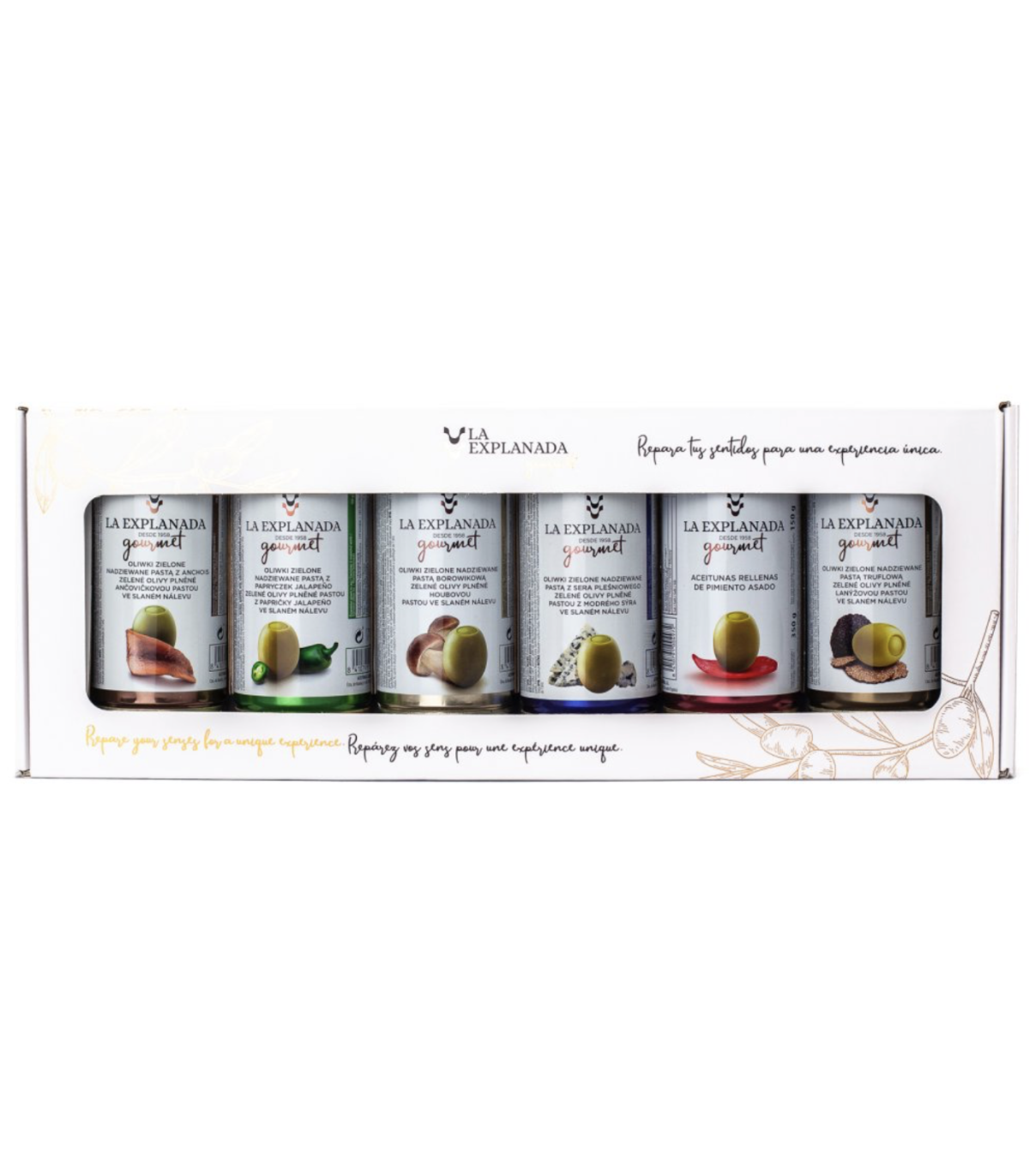 Darčeková súprava šiestich druhov olív je skvelý tip na originálny darček pre všetkých milovníkov dobrého jedla a pitia. Elegantné balenie ukrýva pestrú ochutnávku olív, ktoré potešia jemnými aj výraznejšími príchuťami. Perfektne doplní večerné posedenie pri poháriku vína aj spoločné chvíle s priateľmi, kedy chcete na stôl položiť niečo zaujímavé a chutné.