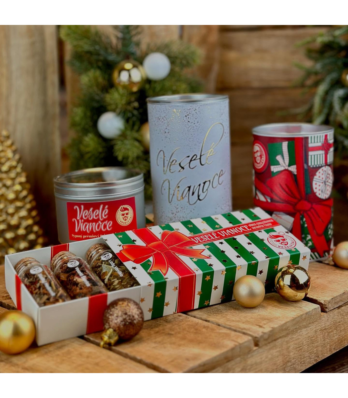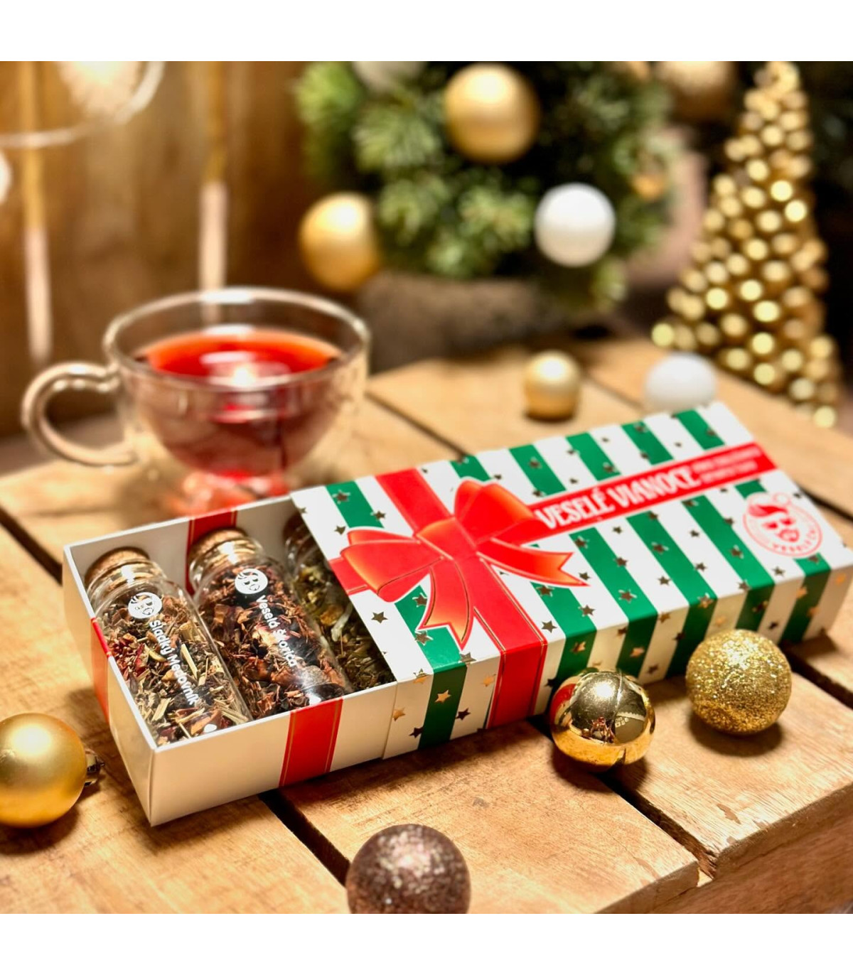 Darčeková sada „Veselé Vianoce“ spája vôňu, chuť aj kúzlo sviatočných okamihov – perfektná voľba pre tých, ktorí si radi doprajú horúci šálok čaju v dobrej spoločnosti.