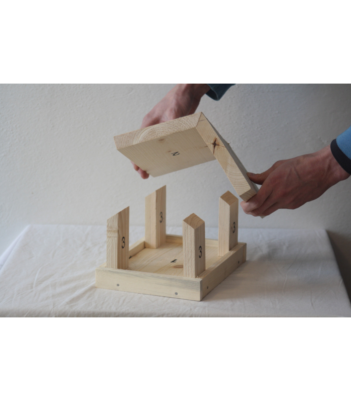 Stavebnica je pre prepravu zabalená v jutovom vreci, ktoré sa dá následne využiť.