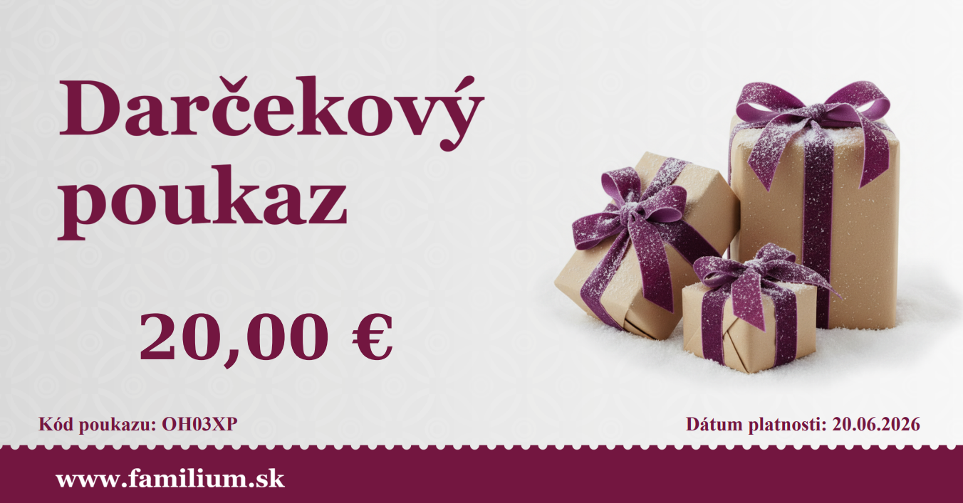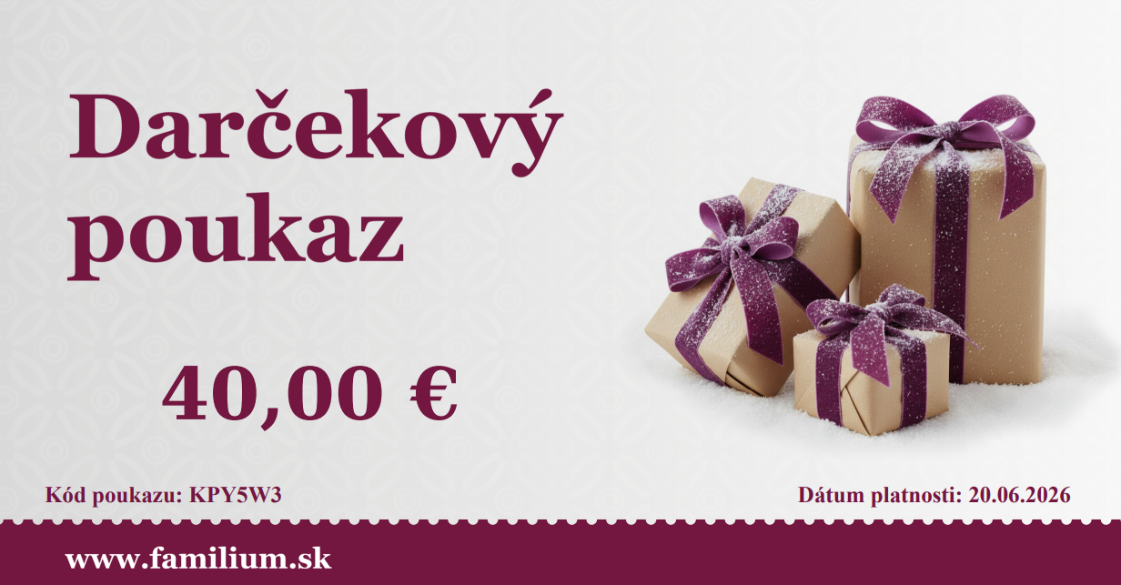 Darčekový poukaz v hodnote 100 EUR je krásnym a praktickým riešením. Po dokončení objednávky ho dostanete do niekoľkých minút e-mailom a môžete ho hneď darovať.