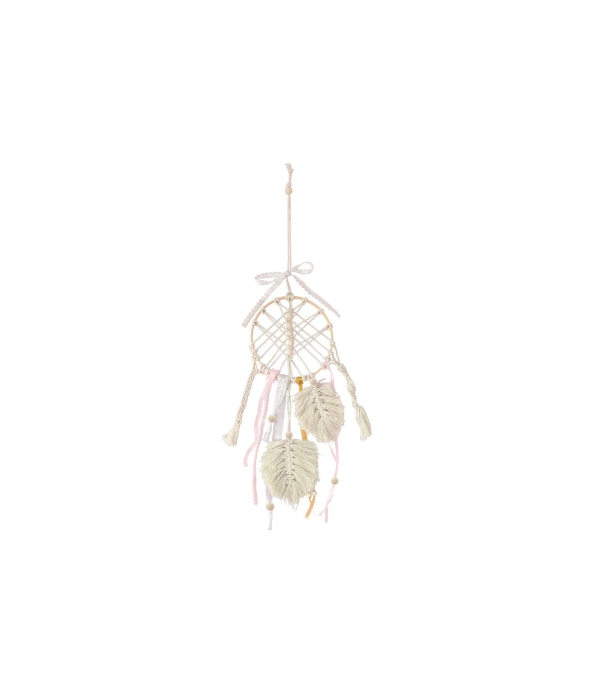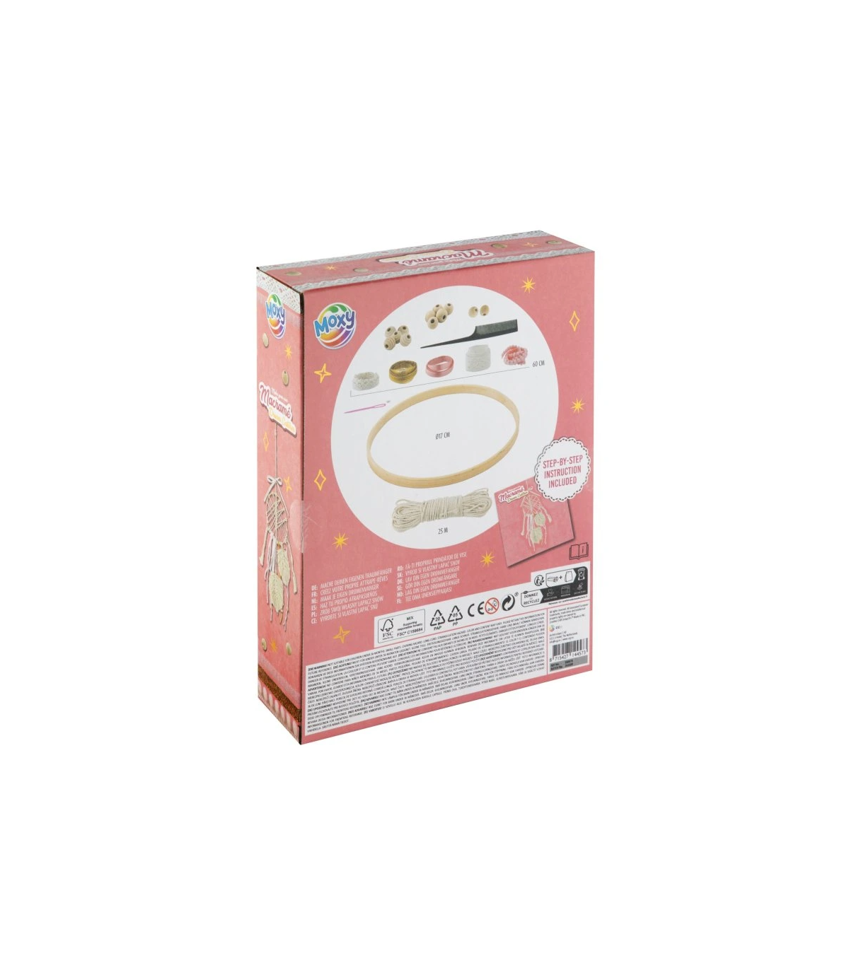 V balení nájdete všetko potrebné na vytvorenie vlastného originálneho lapača — bavlnenú priadzu, kruh aj ozdobné prvky.