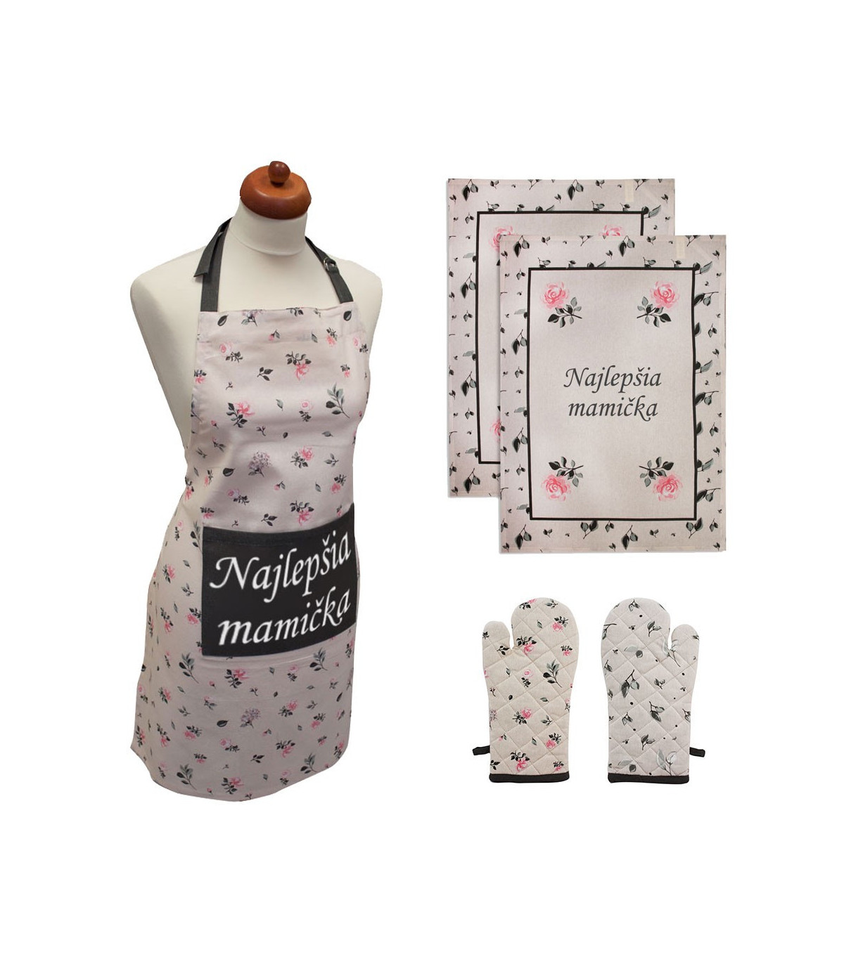 Najlepšia mamička – zástera, chňapka s magnetom a dve utierky