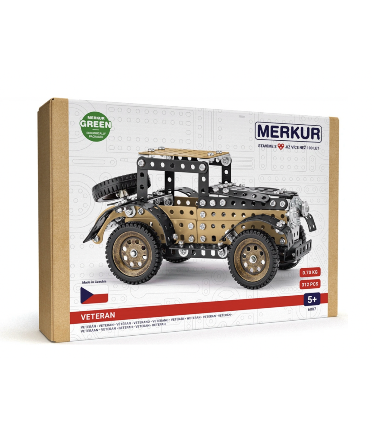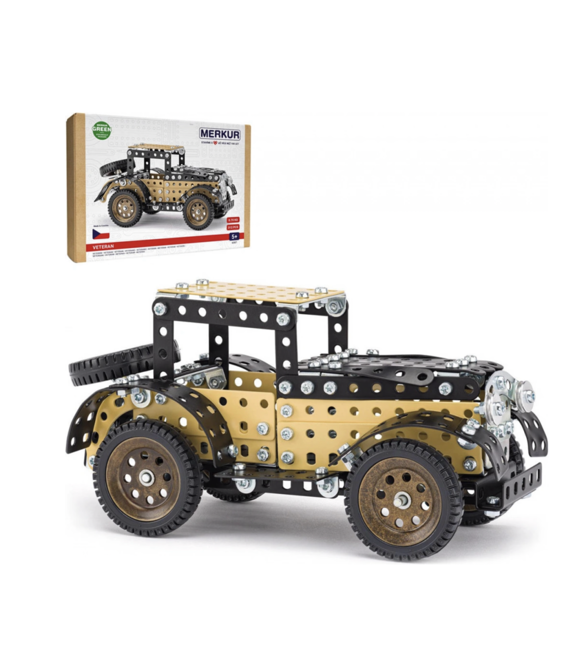 Tradičná kovová stavebnica Merkur - Veterán ponúka zábavu aj výzvu pre všetky generácie. Obsahuje 312 dielikov, z ktorých si postavíte krásny retro model historického auta. Vďaka skrutkám, matičkám a priloženému náradiu si deti, oteckovia i deduškovia užijú tvorivý čas, ktorý rozvíja technické myslenie, trpezlivosť aj zručnosť.
