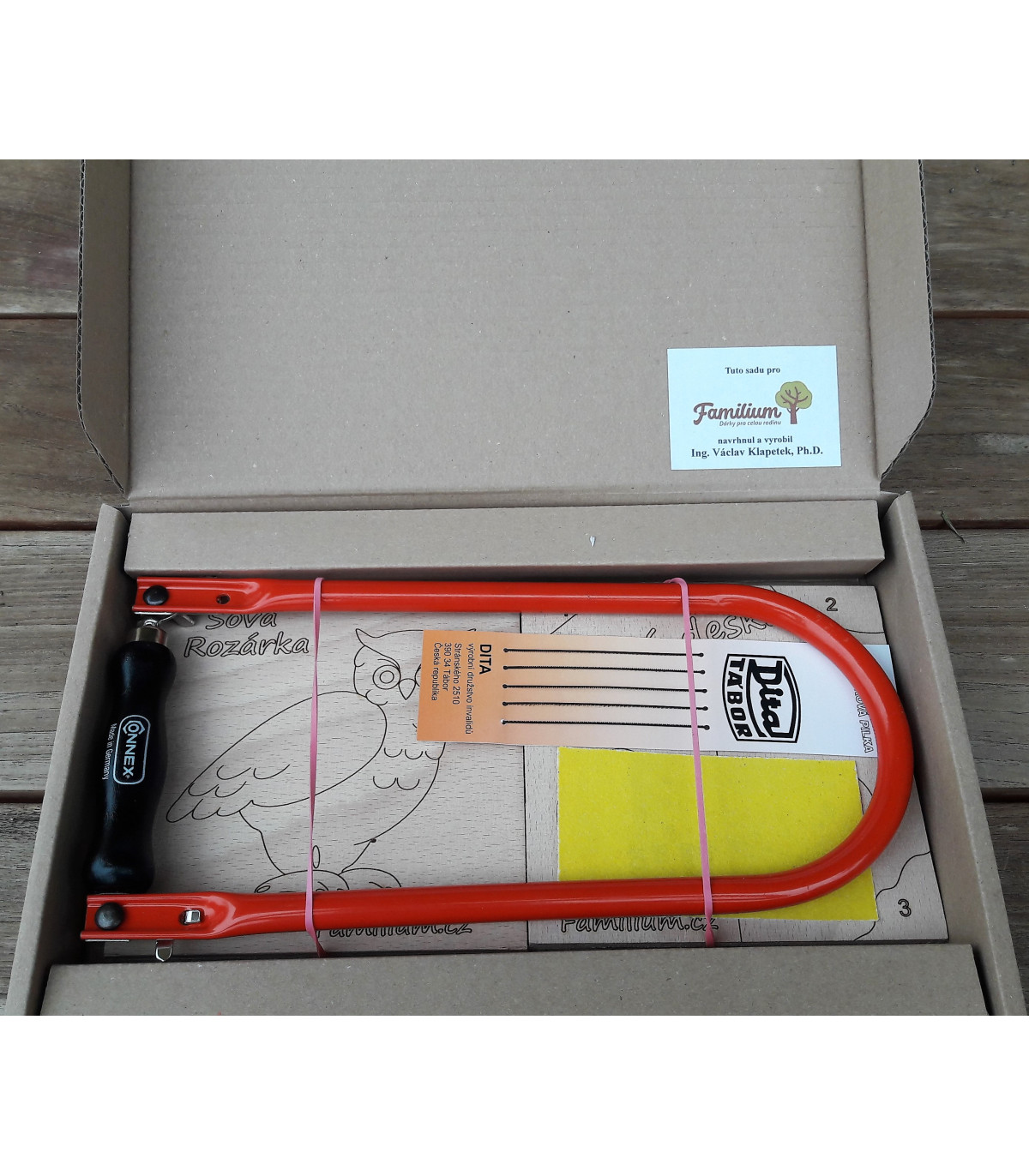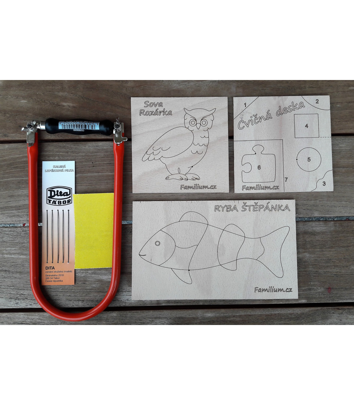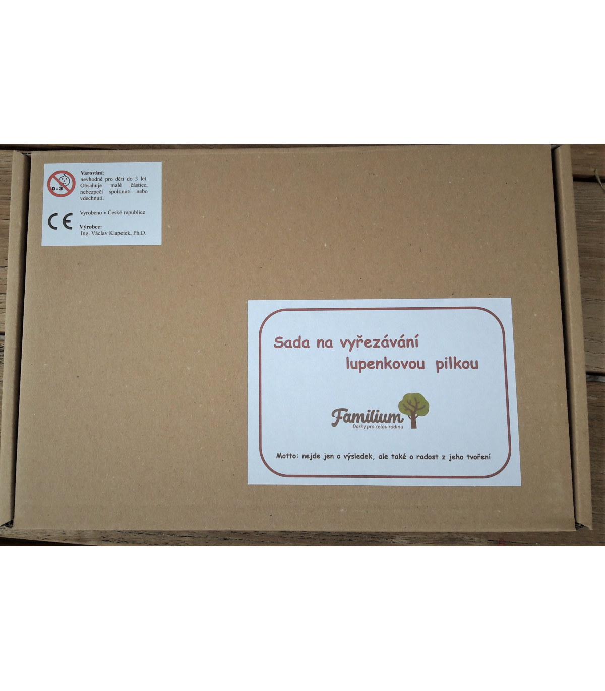 Vyrezávacia sada je originálny darček nielen pre pánov a chlapcov – začínajúcich rezbárov. Práca s drevom je ukľudňujúca, prehlbuje lásku k prírode a piluje presnosť a trpezlivosť. Súčasťou je lupienková pílka, cvičná doska pre úplný začiatok, dve dosky so zvieratkami – ryba Štepánka a sova Rozárka a podrobný návod.