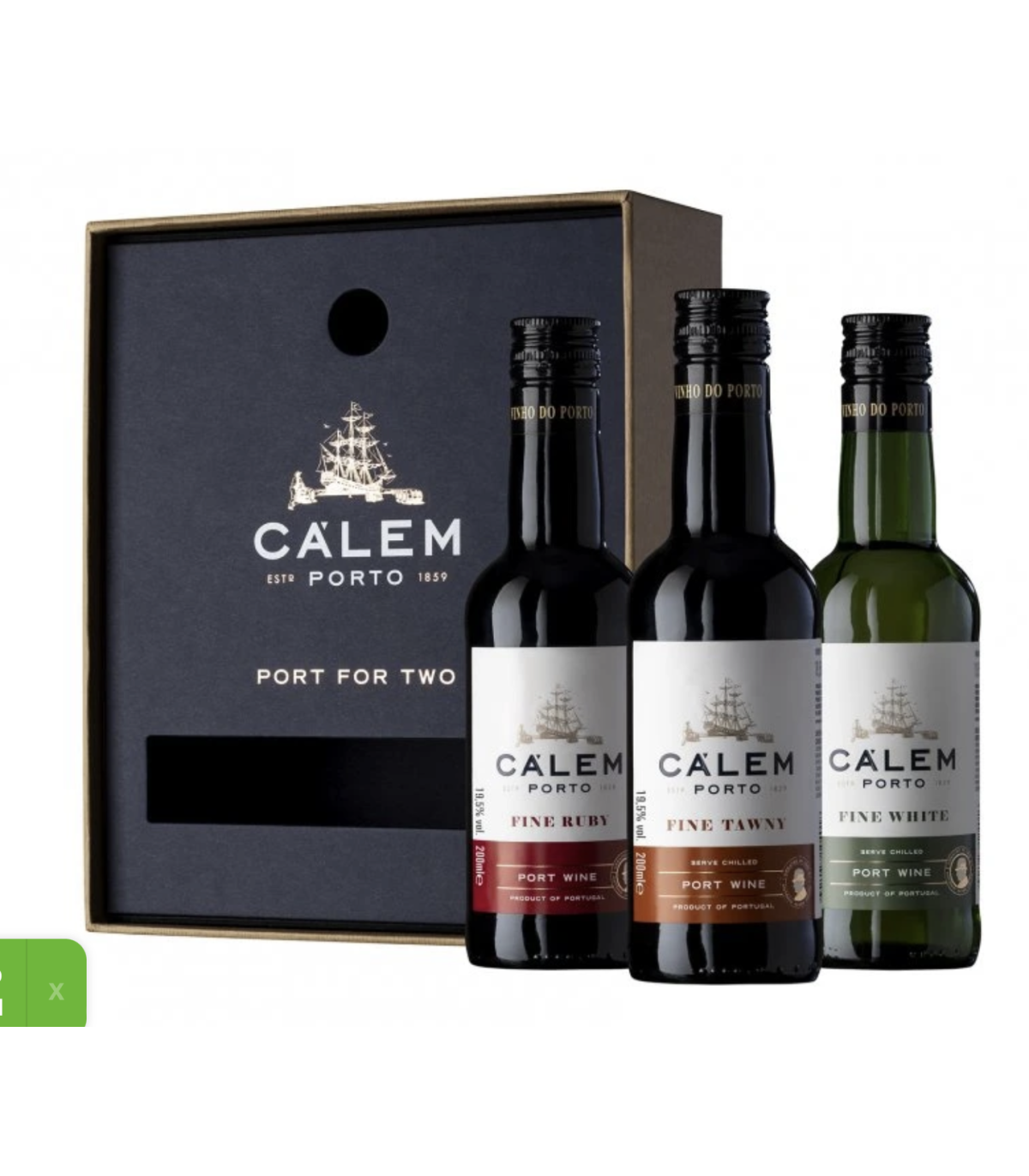 Cálem Fine Box je elegantná darčeková sada troch portských vín, ktorá poteší každého milovníka kvalitného pitia. Vo vnútri nájdete biele portské, ovocné Fine Ruby a zrelé Tawny, každé vo fľaštičke s objemom 0,2 l. Vďaka kombinácii troch štýlov môžete ochutnať sviežosť bieleho, plnú chuť Ruby aj jemnú komplexnosť Tawny.